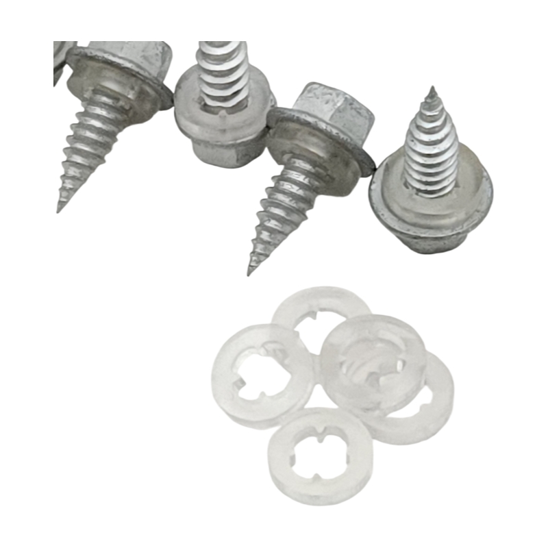 The screws come pre-assembled with transparent PVC washers, ideal for indoor applications or cost-sensitive projects.