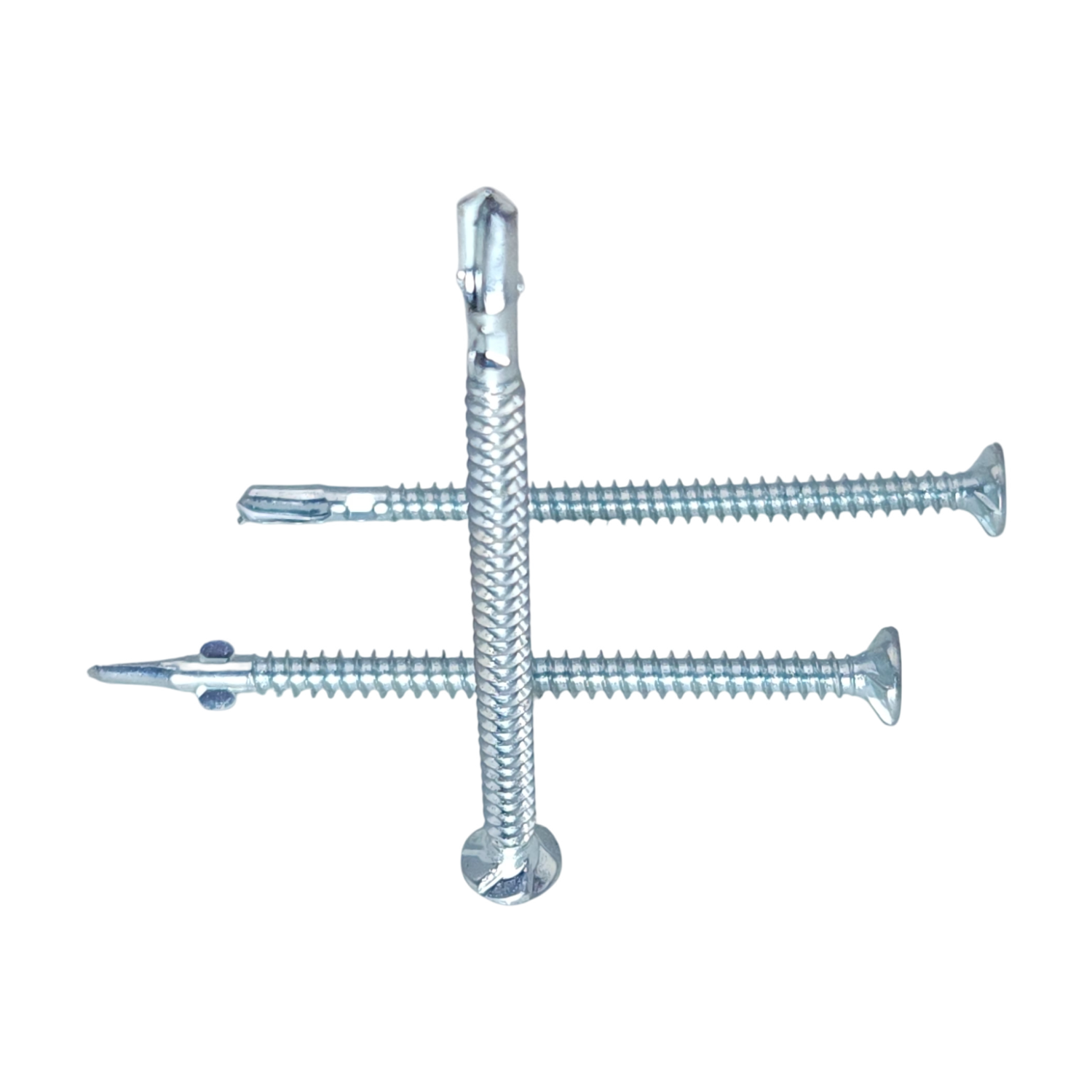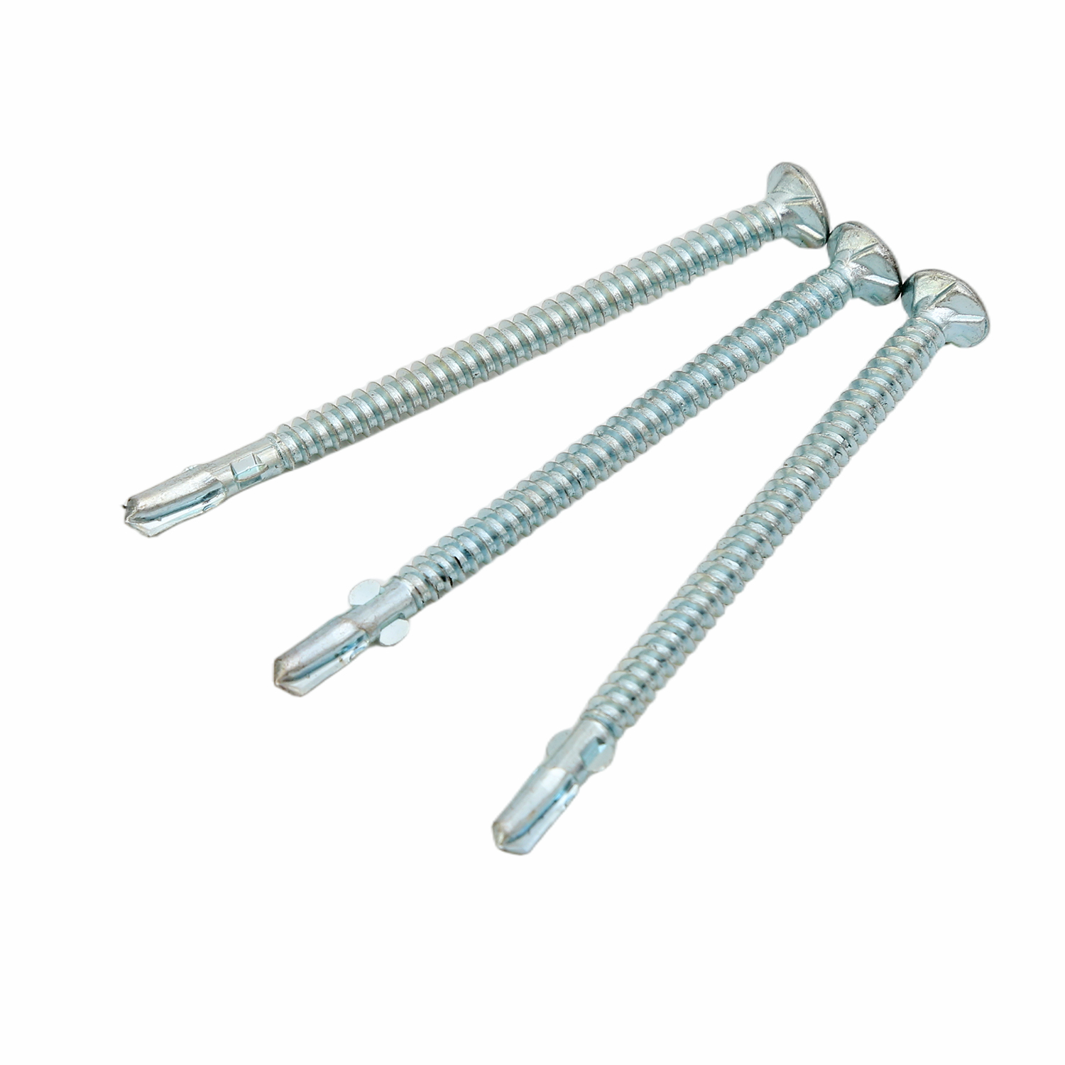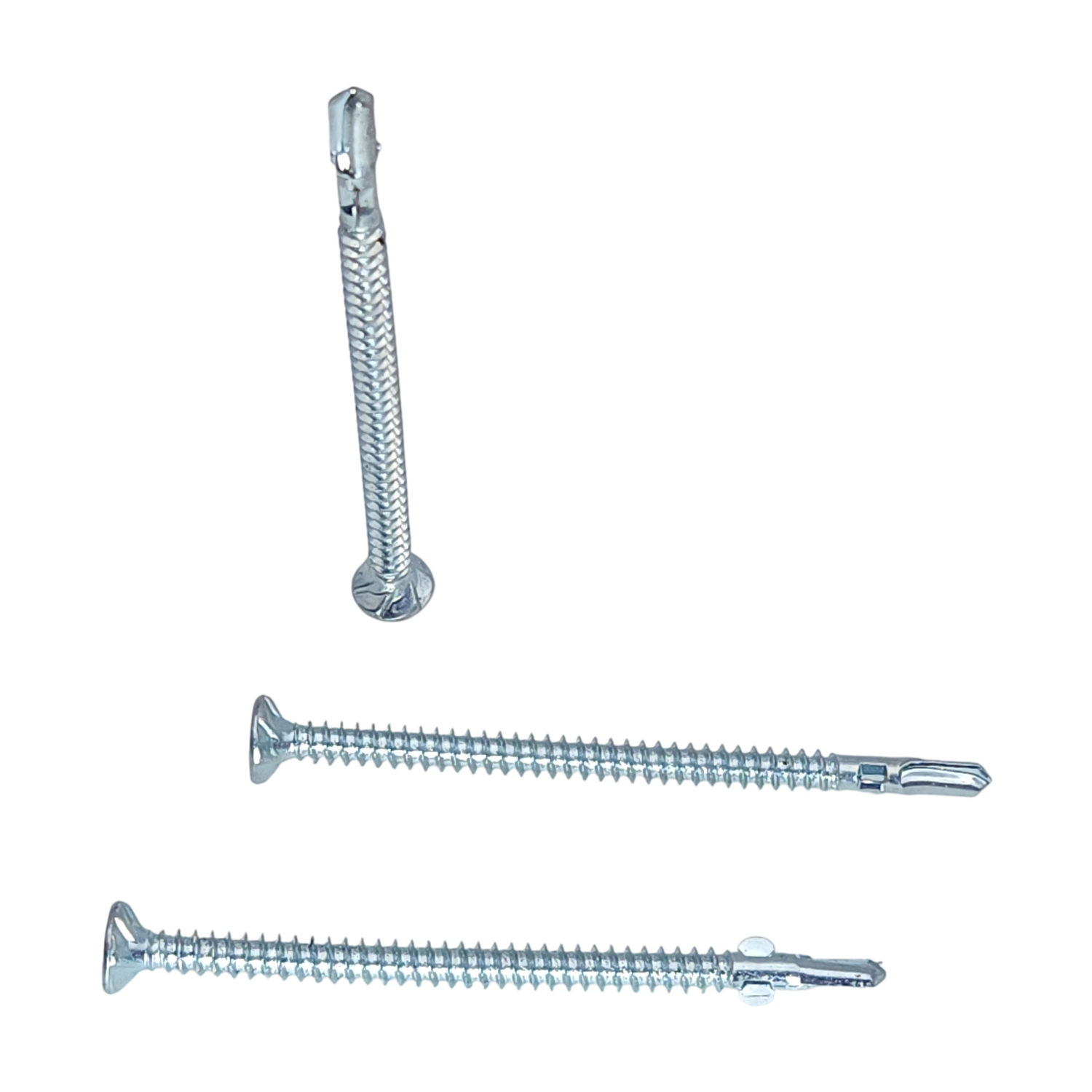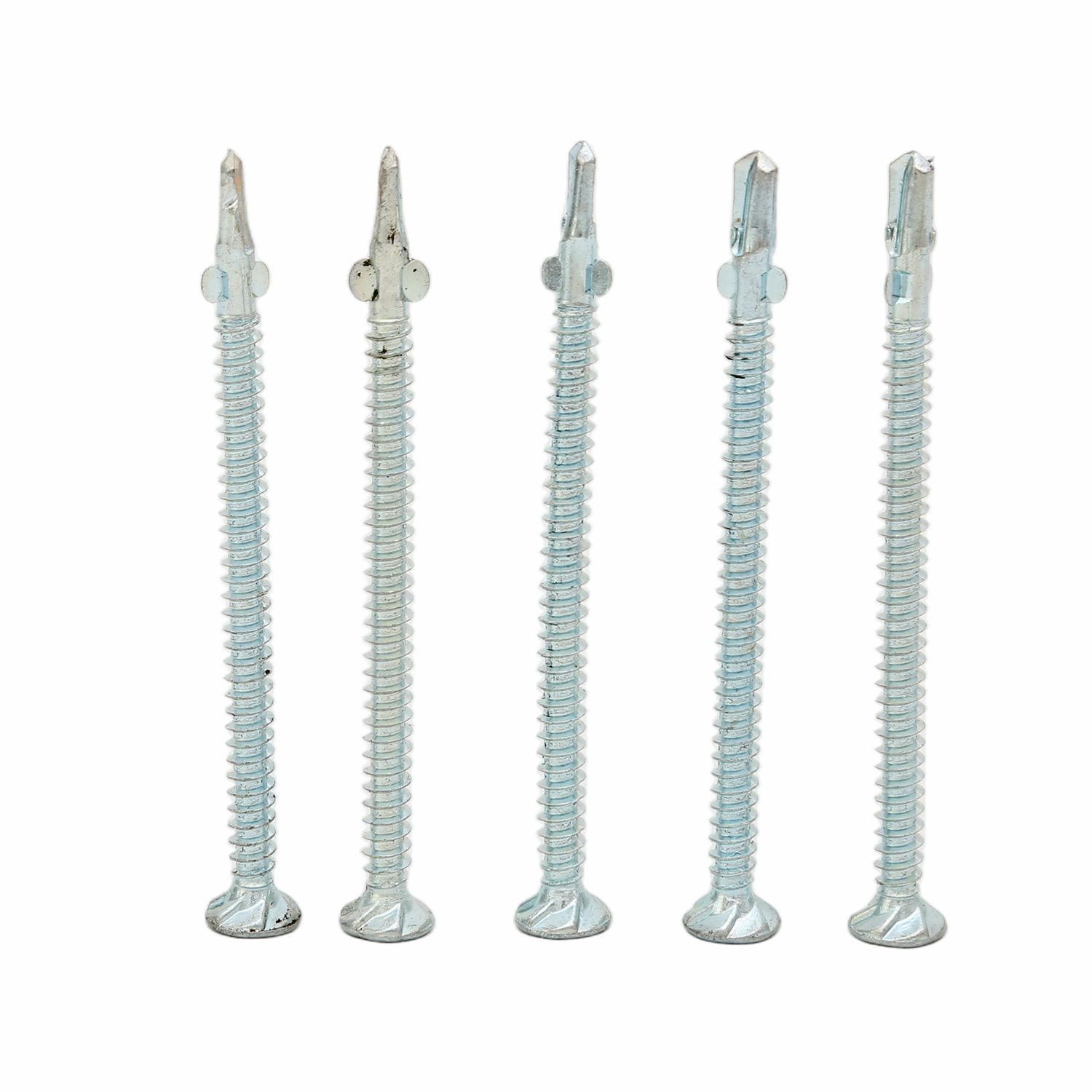 Their integrated wings penetrate wood decking, breaking away to clear the path for the self-drilling tip to bore through the steel substrate.